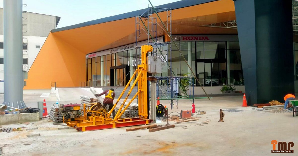 บริษัท ไทยไมโครไพล์ จำกัด รับตอกเสาเข็มไมโครไพล์ บริษัท ฮอนด้าคาร์ส์ เทพารักษ์ จำกัด สำหรับการตอกในการวางรากฐานการรับน้ำหนักของตัวอาคาร โดยได้เลือกใช้เสาเข็มประเภท เสาเข็มไอไมโครไพล์ขนาด 15 ซม. จำนวน 6 ต้น