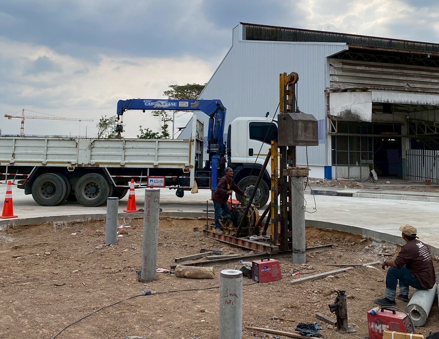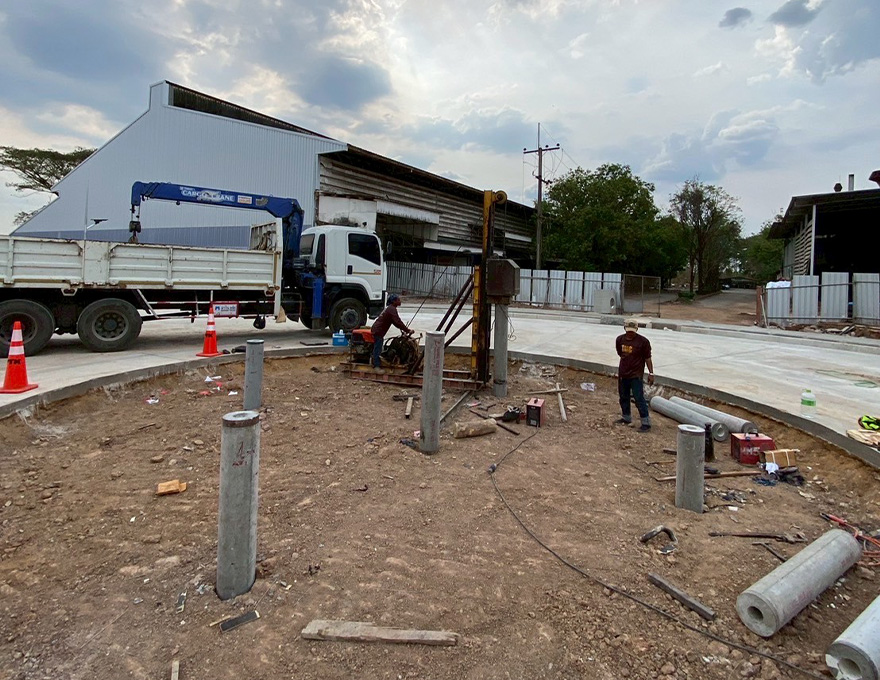บริษัท ไทยไมโครไพล์ จำกัด รับตอกเสาเข็มไมโครไพล์ ให้กับ สหพัฒน์ กบินทร์บุรี โดยได้เลือกใช้เสาเข็มประเภท เสาเข็มสปันไมโครไพล์ขนาด 25 ซม. สำหรับการตอกในการวางรากฐานตัวอาคาร